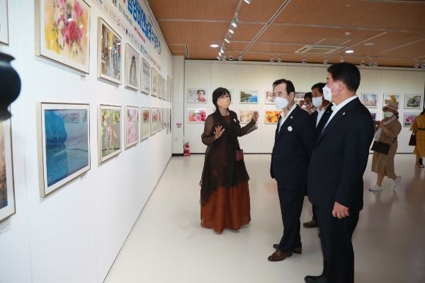 [경남도민뉴스] 함양군은 2021 함양산삼항노화엑스포 개막일인 10일 오전에 함양문화예술회관에서 ‘제1회 IWS세계수채화 함양비엔날레' 전시 오프닝 행사를 서춘수 군수, 황태진 군의회 의장, 김재웅 경상남도의회 의원, 노기창 농협은행 함양군지부장, 강성갑 함양예총 회장을 비롯한 (사)한국수채화협회 이상남 고문, 소훈 이사장 등 국내의 내로라하는 유명 작가들이 대거 참여한 가운데 개최했다고 밝혔다.