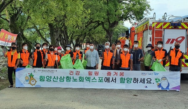 [경남도민뉴스] 함양군 안의의용소방대(대장 김기종)는 9일 오후 안의면장, 군의원, 주민자치위원장, 안의119안전센터, 의용소방대 등 30여명이 참여한 가운데 엑스포 성공개최에 동참하기 위하여 오리숲 및 하천 주변에 환경정화 활동을 실시했다.