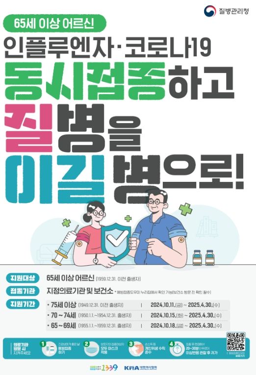 그 외 지역일 경우에는 △10월 11일, 75세 이상 어르신 △10월 15일, 70 부터 74세 어르신 △10월 18일, 65 부터 69세 어르신의 순서로 접종이 시작되어 2025년 4월 30일까지 진행된다.