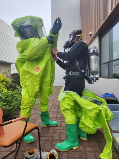 Level A 보호복 착·탈의 훈련을 시작으로 야외훈련, 무전송수신기 숙련훈련 등을 지속적으로 실시했으며, 7월 22일 보호복 착의 후 시간 유지 훈련을 시작하여 9월 23일 훈련 시에 40분 이상 유지 목표를 완료한 초동대응요원 2명을 배출했다.