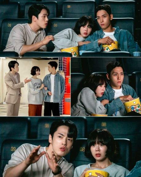 다림에게 데이트 신청한 강주는 얼떨결에 태웅과도 동행한다. 다림을 가운데에 낀 채 공포 영화를 보고 있는 두 남자의 모습이 웃음을 자아낸다. 여기에 강주는 눈이 안 보이는 다림을 위해 옆에서 장면을 설명해주며 다정한 면모를 드러내고 있어 보는 이들을 미소 짓게 만든다.