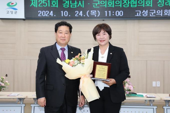 정례회는 고성군 홍보영상을 시청한 후 허홍 협의회장의 개회사, 최을석 고성군의회 의장의 환영사, 이상근 고성군수의 축사에 이어 의정업무 유공자에 대한 표창패 수여식을 가졌다.