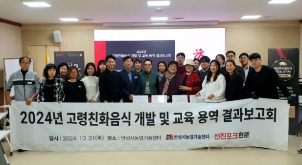 [경남도민뉴스=김미순 기자] 안성시농업기술센터는 저작 활동이 어려워 영양 섭취가 어려운 노인을 위하여 ㈜선진과 함께 돼지고기 뒷다리살을 이용한 음식 4종을 개발했다.