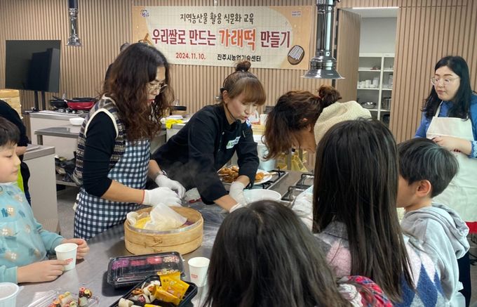 [경남도민뉴스=김종태 기자] 진주시는 ‘농업인의 날’을 기념하여 우리 쌀의 소중함을 알리고 농업의 중요성을 되새기고자 어린이 48명을 대상으로 ‘가래떡 만들기 교육’을 진행했다.