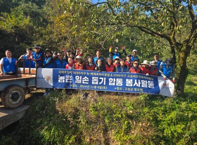 이날 실시한 일손 돕기는 고성쟈스민로타리클럽과 대전 뉴-백제로타리클럽이 2016년부터 자매결연을 맺고 해마다 일손이 부족한 농가를 찾아 봉사와 나눔의 실천을 함께 추진해 오고 있는 활동의 일환이다.