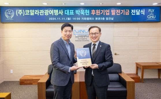 [경남도민뉴스=김종태 기자] 경상국립대학교는 후원기업 ㈜코알라관광여행사 박욱현 대표가 대학발전기금 1000만 원을 약정했다고 밝혔다.