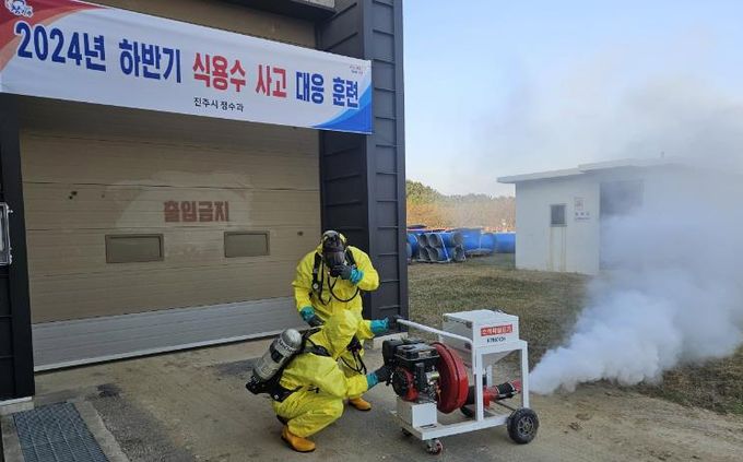 [경남도민뉴스=김종태 기자] 진주시는 지난 12일 제2정수장에서 염소가스 누출에 대비한 ‘식용수 사고 대응 훈련’을 실시했다고 밝혔다.