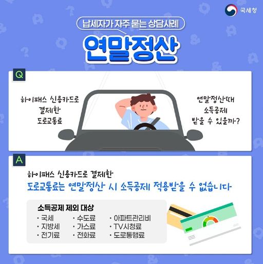 [경남도민뉴스=공동 기자] Q. 하이패스 신용카드로 결제한 도로교통료 연말정산 때 소득공제 받을 수 있을까?