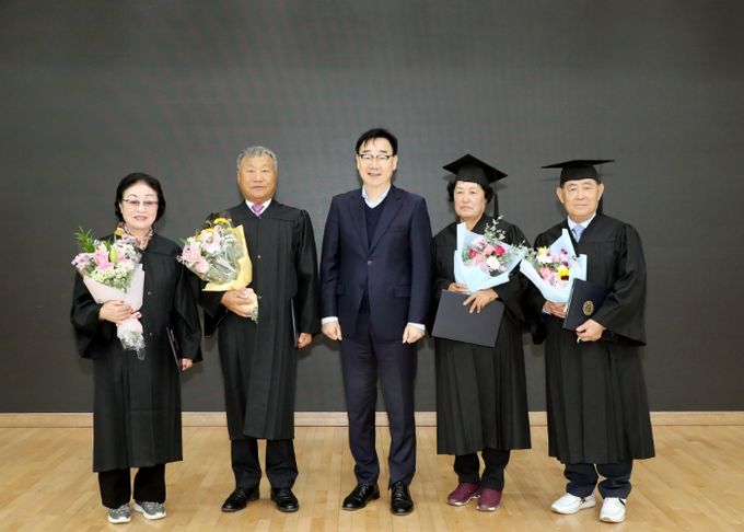 특히, 수료생들이 후학양성을 위해 십시일반으로 마음을 모아 노인대학 100만 원, 노인대학원 200만 원 총 300만 원의 장학기금을 전달해 훈훈함을 더했다.