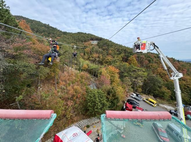 이번 훈련은 짚와이어 안전사고 발생에 대비하여 구조대원 역량을 향상하고 협력체계를 강화하고자 마련됐다.