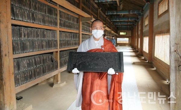 합천군과 해인사는 오는 20일 개최되는 2017대장경세계문화축전 공식 개막식에 앞서 이번 축전에 전시되는 팔만대장경판 여덟 점을 해인사에서 축전 주행사장인 대장경테마파크로 이운하고 이와 함께 부처님께 팔만대장경의 이운을 고하는 고불식을 열었다.