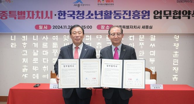 [경남도민뉴스=도문호 기자] 세종특별자치시가 28일 시청 세종실에서 한국청소년활동진흥원과 지역 청소년들의 성장을 지원하기 위한 업무협약을 체결했다.