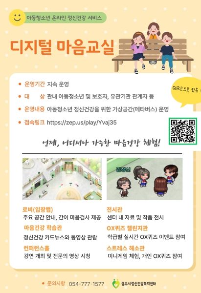 박재홍 경주시정신건강복지센터장은 “이번 서비스가 청소년들이 정신건강 정보를 보다 쉽게 접하고 도움을 받을 수 있는 기회가 되길 바란다”고 전했다.