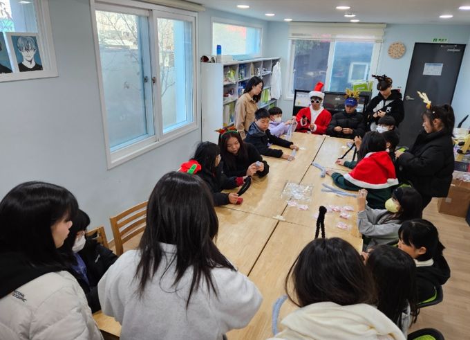 12월 14일에도 관내 솔로몬지역아동센터를 방문하여 ‘산타와 함께하는 미리 크리스마스’라는 주제로 센터 아이들 10여 명과 함께 산타와 함께 선물 전달식, 모루인형 키링 만들기, 신나는 놀이활동을 진행했다.