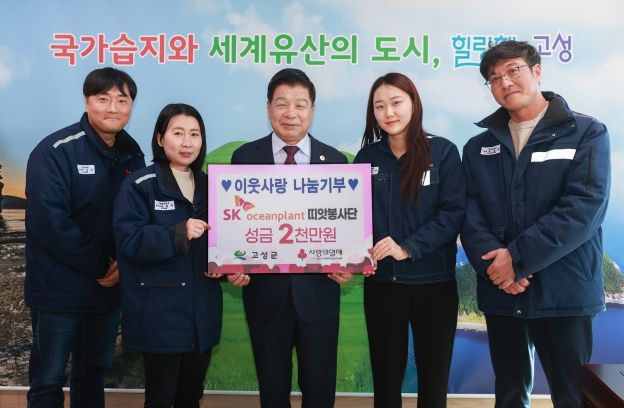 [경남도민뉴스=이형섭 기자] 고성군 동해면 양촌·용정일반산업단지내(內) SK오션플랜트 띠앗봉사단는 12월 16일 고성군청을 방문하여 어려운 이웃을 위해 이웃돕기성금 2천만 원을 전달했다.