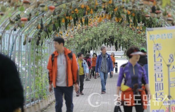 주차장에서 축전장으로 향하는 진입로에 생태터널을 만들어 이색적인 분위기를 연출해 축전장을 찾는 사람들에게 신선한 볼거리를 제공하고 있다.