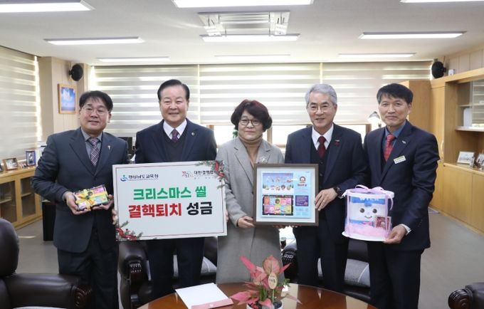 [경남도민뉴스=김종태 기자] 경상남도교육청은 18일 오전 교육감실에서 대한결핵협회 울산경남지부(지회장 정연희)로부터 크리스마스실(Christmas seal)과 열쇠고리(키링), 실 증정용 액자를 받고, 결핵 관리 사업 수행을 위한 결핵 퇴치 성금 200만 원을 전달했다.