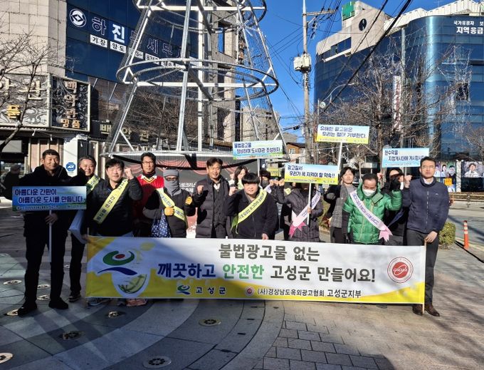 [경남도민뉴스=이형섭 기자] 고성군은 12월 23일 고성읍 고성시장 일원에서 쾌적한 거리 환경 조성을 위한 불법 옥외광고물 근절 캠페인을 실시했다.