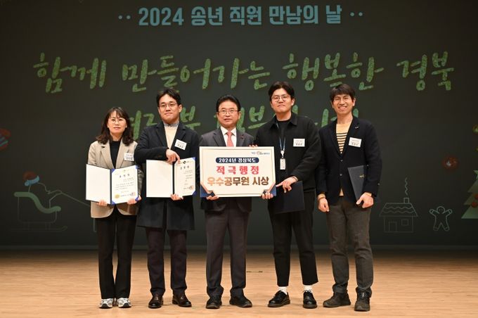 [경남도민뉴스=이돈휘 기자] 경상북도는 26일 도청 동락관에서 개최한 ‘2024년 송년 직원 만남의 날’ 행사에서 창의성과 전문성을 바탕으로, 적극적으로 업무를 처리해 선발된 2024년 하반기 적극 행정 우수공무원 5명을 포상하고 격려하는 자리를 가졌다.