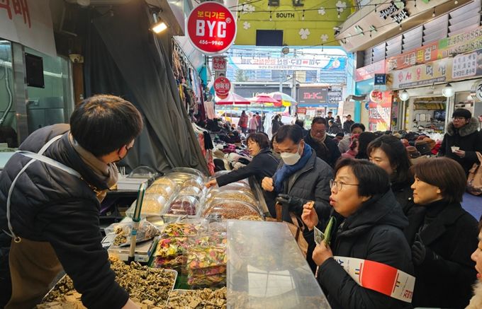 [경남도민뉴스=이돈휘 기자] 경상북도 경제통상국 직원들은 연말을 앞둔 27일 구미를 찾아 새마을중앙시장 현장소통 장보기 행사와 지난 14일 개통된 대구권 광역철도 홍보를 위한 캠페인 등을 진행했다.