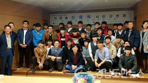 (거창/최병일) = 거창군(군수 양동인)의 군립한마음도서관은 지난 9일 오후 7시 대성고등학학생들과, 교사 그리고 거창문학회원 80여 명이 참가해 신용목 시인 강연회를 열었다고 14일 밝혔다.