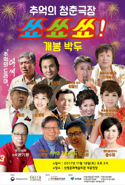 산청군에 따르면 추억의 버라이어티쇼 청춘극장은 문화체육관광부와 한국콘텐츠진흥원 주최, 한국대중음악인연합회가 주관, 산청군이 후원하는 문화사업의 일환으로 무료로 진행된다.