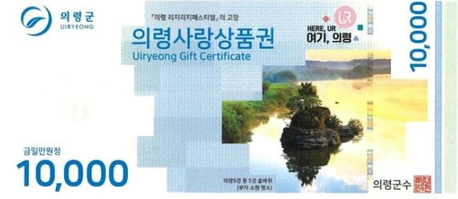 한편, 의령군은 설 명절을 맞이하여 1월 1일(수)부터 1월 31일(금)까지 한시적으로 의령사랑상품권을 15% 특별 할인 판매한다. 단, 종이상품권은 기존 10% 할인율을 유지하되, 카드 및 모바일 상품권에 대해서만 15% 할인율이 적용된다.