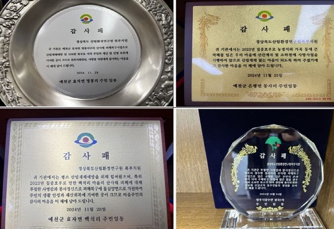 아울러, 대규모 산사태 및 인명 피해가 발생한 예천군 효자면 명봉리·백석리, 은풍면 동사리, 영주시 장수면 성곡1리 등 주민들은 북부 지원에 산사태 복구 사업의 마무리에 대한 감사패를 전달했다.