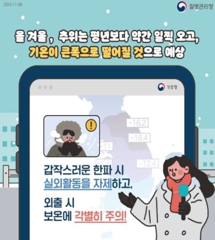 구인모 거창군수는 “한랭질환은 추위가 직접적인 원인이 되는 만큼 갑작스러운 한파 시 실외활동을 자제하고, 외출 시 보온에 각별하게 신경 써 건강한 겨울을 보내시길 바란다”라고 말했다.