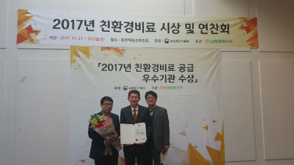 (산청/최광용 기자) = 산청군은 지난 21일 전북 무주군 덕유산 리조트에서 열린 친환경 비료 연찬회에서 2017년 친환경비료 지원사업 전국 시·군·구 기관 정책평가 우수상을 수상했다.