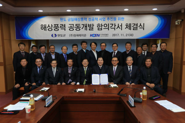 이에 남동발전과 완도군은 지난해 12월 신재생에너지 공동개발 및 양 기관 간 상생협력을 통해 지역경제와 관련 산업의 활성화를 촉진하기 위한 양해각서(MOU)를 체결했고, 완도 금일해상풍력 개발을 위해 기상탑 설치, 타당성 조사 등을 활발히 진행 중에 있다.