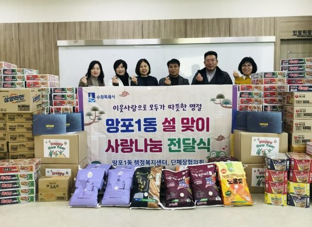 한편, 망포1동은 기탁받은 물품을 긴 설 연휴기간 동안 식사준비에 어려움을 겪는 저소득 홀몸어르신, 저소득 아동 등에게 우선 지원할 예정이다.