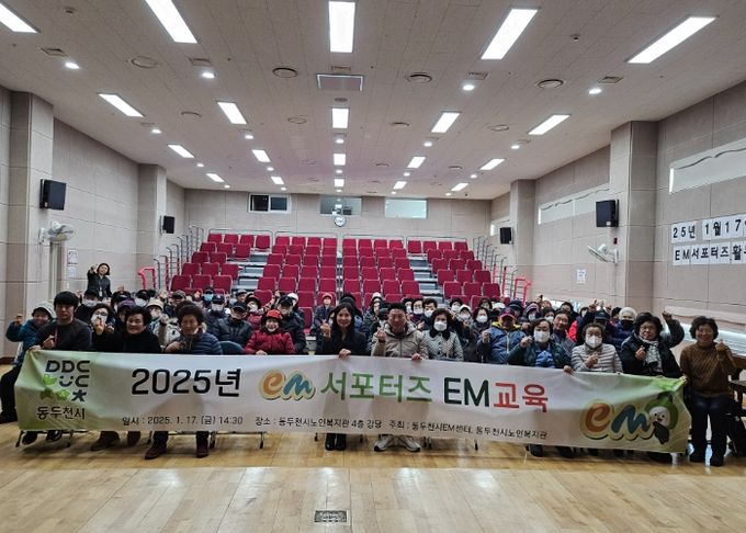 [경남도민뉴스=김미순 기자] 동두천시는 17일 동두천시 노인복지관에서 김승호 동두천시의회 의장이 참석한 가운데 EM서포터즈 80명을 대상으로 유용미생물(EM) 교육을 실시했다고 밝혔다.