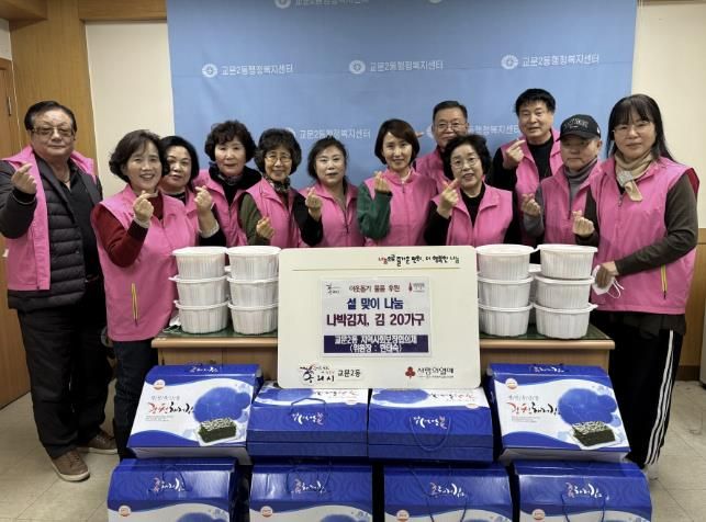 이번 사업은 사회복지공동모금회에서 교문2동 CMS 사업비로 기탁된 소중한 성금으로 진행됐으며, 이날 위원들은 직접담근 계절김치와 김을 직접 포장하여 그동안 결연되어 안부를 챙기던 어르신 가구를 직접 방문하여 전달하며 명절의 훈훈한 분위기도 함께 전달했다.