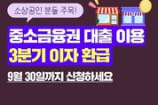 [경남도민뉴스=경남도민뉴스 기자] 소상공인분들 주목! 높은 대출 금리로 어려움을 겪는 소상공인의 금융부담을 덜어주기 위한 이자 환급을 진행중입니다 중소금융권 대출 이용하시는 분들, 3분기 이자 환급 9월 30일까지 신청하세요. 환급 대상 2023년 12월 31일 기준, 중소금융권에서 5% 이상 7% 미만의 사업자대출을 받은 개인사업자 또는 법인 소기업 이자 환급 신청 중소금융권 대출 이자 환급은 연중 상시 신청이 가능합니다 이자를 1년 이상 납입한 사실만 확인되면, 신청 이후 도래하는 분기말에 1년치 환급액 한번에 지급합니다. 신청 방법 Ⅴ 9월 23일(월)부터 지원대상 차주 등에게 각 금융기관에서 신청 사항을 안내해드리고 있습니다. (자사 홈페이지 게시 또는 문자메시지) 주의하세요! 안내 문자메시지는 스마트폰으로 신청할 수 있는 링크를 제공하지 않습니다. 단순 안내 이상으로 개인정보, 신분증을 요구하지 않습니다. Ⅴ 신청 채널 및 제출 서류는 차주가 꼼꼼하게 확인해주세요. · 개인사업자 - 거래 금융기관 방문 없이, 신용정보원 온라인