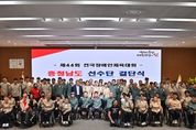 [경남도민뉴스=공동취재 기자] 제44회 전국장애인체육대회 개막이 열흘 앞으로 다가온 가운데, 충남도 장애인체육 선수단이 ‘종합 6위’ 목표 달성을 위한 결의를 다졌다. 김태흠 지사는 15일 도청 대회의실에서 개최한 도 대표 선수단 결단식에 참석해 선수단을 격려하고 응원을 전했다. 김 지사와 총감독을 맡은 변현수 도 장애인체육회 사무처장, 종목별 선수단 등 180여 명이 참석한 가운데, 이번 행사는 출전 보고, 단기 수여, 선수 대표 선서, 패럴림픽 포상금 수여, 후원금 전달 등의 순으로 진행했다. 오는 25일부터 30일까지 6일간 경남 일원에서 열리는 이번 전국장애인체육대회에 도 선수단은 골볼, 배구, 보치아, 횔체어럭비 등 24개 종목 총 689명이 출전한다. 이번 대회에서는 지난 파리 패럴림픽에서 메달을 획득한 보치아 정소영(메티스) 선수, 휠체어펜싱 권효경(홍성군청) 선수 등이 주목되며, 지난 6월 출범한 충청남도장애인체육회 우수선수단의 활약도 기대된다. 아울러 이날 결단식에선 농협이 선수단의 목표 달성을 기원하며 후원금 3000만 원을 전달해 힘을 불어넣었다. 이