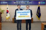 [경남도민뉴스=구인애 기자] 경상국립대학교는 12월 29일 오후 2시 대학본부 3층 접견실에서 ‘대학생 농촌일손돕기 참여 활성화 발전지원금 전달식’을 개최했다. 발전지원금 전달식에는 경상국립대학교 권진회 총장, 하재필 학생처장, 염준호 사회공헌센터장, 경남농협 류길년 본부장, 노태곤 농촌지원단 단장, 서정현 차장, 농협중앙회 진주시지부 이태용 지부장, NH농협은행 경상국립대학교지점 정현호 지점장이 참석했다. 이날 발전지원금 전달식은 대학생들의 농촌일손돕기 활동을 지원하고 지역사회 상생을 강화하기 위해 (사)도농상생국민운동본부의 후원을 받아 마련됐다. 경남농협은 이를 위해 경상국립대학교 대학발전기금 1000만 원을 기탁했다. 경남농협은 국가거점 국립대학의 교육경쟁력 강화와 인재 양성을 지원하기 위해 이번 발전기금을 전달한다고 밝혔다. 경상국립대학교는 올 한 해 동안 15회에 걸쳐 753명의 대학생이 농촌일손돕기에 참여했다. 농번기 인력부족 해소는 물론 집중호우로 피해를 입은 지역의 수해복구 활동에도 적극 나서 지역사회에 실질적인 도움을 제공해 왔다. 류길년 경남농협 본부장은
