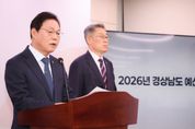 [경남도민뉴스=구인애 기자] 경상남도는 13일 오전 도청 프레스센터에서 열린 브리핑을 열고, 2026년도 예산안을 전년 대비 1조 8,118억 원(14.5%) 늘어난 14조 2,845억 원으로 확정했다고 발표했다. 이날 박완수 도지사는 “2026년도 예산안은 재난·재해 등 위기 대응 능력을 강화하고, 도민행복시대 시책을 안정적으로 추진하며, 미래성장 기반을 다지는 데 중점을 뒀다”고 밝혔다. 이어 “현장에서 만난 도민의 다양한 목소리를 반영한 체감형 사업에 예산을 우선 배분했다”며 “14조 원 규모의 예산이 도민의 행복과 지역경제 활력의 마중물이 될 것”이라고 강조했다. 박 지사는 또 “부동산 시장 불안 등으로 자체 세입은 제자리걸음 수준이지만, 정부예산안에 반영된 국비가 11조 원을 돌파하면서 국고보조금이 대폭 증가했다”고 설명했다. 세입예산은 △국고보조금 8조 4,324억 원(59.0%), △지방세 수입 3조 8,050억 원(26.6%), △지방교부세 1조 801억 원(7.6%) 등으로 구성됐으며, 국고보조금이 절반 이상을 차지한다. 경남도는 혁신적 예산편성을 위해 ‘예산편성점검단’을 운영, 사