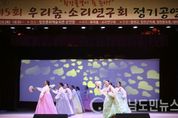 (합천/권연홍 기자) = 합천군(문준희 군수) 우리춤·소리연구회가 주관한 정기공연이 지난 28일 오후 6시 30분에 합천문화예술회관 대공연장에서 열렸다. 제34회 대야문화제 사전행사 일환으로 개최된 이 날 행사에는 문준희 합천군수와 김윤철 도의원을 비롯한 기관사회단체장과 지역주민 등 100여 명이 참석한 가운데 민요와 장구 공연을 시작으로 가야금병창, 화관무, 민요춤 등 다양한 우리 춤과 노래를 선보였다. 올해로 다섯 번째 정기공연을 개최한 우리춤·소리연구회는 그 동안 관내 마을회관과 복지시설 등을 찾아가며 소외계층을 위한 다양한 행사에 참여해왔다. 이번 공연에는 국가무형문화재 57호 경기민요 전수자인 최병옥 선생이 특별출연해 경기민요를 시연했으며, 장구춤, 흥춤 등 평소 접하기 어려운 전통무용을 한자리에서 볼 수 있는 시간이었다. 춤과 소리의 멋이 한데 어우러진 이번 공연은 잊혀져가는 우리 전통음악을 살려냄과 동시에 군민들에게는 우리 춤과 소리의 우수성과 아름다움을 알리는 기회가 됐다.