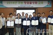 (합천/권연홍 기자) = 합천군(군수 하창환) 농업기술센터에서는 지난 1일 교육생 12명이 참석한 가운데 ‘2018년 귀농 창업활성화 교육 수료식‘을 가졌다고 4일 밝혔다. 이번 교육은 지난달 16일 개강해 3주 동안 귀농인에게 농업창업의 기본이해를 돕고 창업아이디어 발굴 및 성공사례연구를 통해 창업 역량을 강화하고 특히 각 개인의 창업계획서 수립과 진주바이오진흥원 현장실습을 통해 실질적인 창업교육이 되도록 구성했다. 또한 경상남도농업기술원과의 연계를 통해 창업교육 심화반을 운영하여 분야별 기술 교육 및 컨설팅과 강소농, 6차산업 우수 영농법인 현장방문을 실시하여 창업으로 이어질 수 있도록 할 계획이다 조수일 농업기술센터 소장은 인사말을 통해 “농촌발전을 위해서 귀농인의 안정정착과 성공창업이 중요한 시기이다. 귀농인의 성공창업을 위해 교육 및 재정적 지원을 늘리기 위해 노력 하겠다”고 말했다