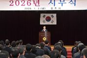 [경남도민뉴스=권중환 기자] 진주시는 2일 시청 시민홀에서 ‘2026년 시무식’을 갖고, 2026년에는 더 높이 도약할 것을 다짐하면서 새해 업무를 본격적으로 시작했다. 이날 시무식에는 조규일 진주시장을 비롯해 공직자 200여 명이 참석한 가운데 ‘공무원 헌장낭독’과 ‘공직자 청렴서약’으로 책임행정의 실천과 공직사회의 청렴문화 정착을 위한 각오를 다졌다. 조규일 진주시장은 새해 인사말을 통해 “지난해 어려운 여건 속에서도 모든 공직자가 현장에서 최선을 다한 덕분에 시민의 안전을 지키고 의미 있는 성과를 이뤄낼 수 있었다”며, “교통 인프라 확충과 대중교통 혁신, 전국·국제단위 행사와 축제 성공적 개최, 우주항공·그린바이오 등 미래 전략산업 기반 구축을 통해 진주의 도시 경쟁력을 한층 높였다”고 평가했다. 이어 “2026년은 그동안 준비해 온 정책과 사업들이 시민의 삶 속에서 체감되는 변화로 이어져야 하는 중요한 해”라면서 “원도심 활성화와 미래 산업 육성, 청년과 미래세대를 위한 정책을 중장기적 관점에서 책임 있게 추진해 지속 가능한 도시로 도약해 나가겠다”고 밝혔다. 아울러 “청렴과 공정은 공직자