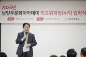 [경남도민뉴스=김동규 기자] 남양주시는 4일 남양주문화원사에서 남양주문화원이 개최한 ‘남양주 문화아카데미 4기 입학식’에 참석해 1년 과정의 문화·예술·인문학교육의 출발을 함께했다고 5일 밝혔다. 문화아카데미는 시민에게 수준 높은 인문 교양 강좌와 지역 역사 교육을 제공하는 남양주문화원의 대표 교육사업이다. 지역의 문화 리더를 양성하는 산실로 자리 잡으며 시민 인문역량 강화에 기여해 왔다. 행사에는 주광덕 남양주시장을 비롯해 김경돈 남양주문화원장, 진익주 총원우회장, 4기 신입 원우 등 40여 명이 참석했다. 행사는 개식과 국민의례를 시작으로 내빈 소개, 입학식사와 축사, 격려사, 기념촬영 순으로 진행됐다. 이어 입학증서 수여와 오리엔테이션을 통해 향후 교육 일정과 운영 방향을 안내했다. 문화아카데미는 3월부터 12월까지 1·2학기 과정으로 나눠 운영한다. 정규강의 20강좌와 특강 2강좌, 문화유산 탐방 및 워크숍 2회 등으로 구성했다. 1학기에는 △보이는 음악, 들리는 문학 △Trend Korea 2026 △케데헌과 한류의 미래 △남양주의 역사·문화 등 다양한 주제의 강의가 이어질 예정이다. 특히