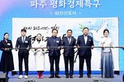[경남도민뉴스=김동규 기자] 파주시가 평화경제특구 유치를 향한 염원과 의지를 대내외에 알리는 '평화경제특구 비전 선포식'을 지난 7일 개최했다. 파주시민회관 대공연장에서 개최된 이번 행사는 김경일 파주시장을 비롯해 주요 내빈과 평화경제특구 유치 시민추진단, 시민 등 200여 명이 참석한 가운데 진행됐다. 행사는 파주시립예술단의 식전 공연을 시작으로, 개회식, 평화경제특구 비전 발표, 시민추진단 2기 위촉식 순으로 이어졌다. 김경일 파주시장은 비전 발표를 통해 평화를 기반으로 한 경제 성장과 신산업 생태계 구축을 목표로 하는 파주 평화경제특구의 추진 방향을 제시했다. 특히 이날 행사에서는 지난해 12월 구성된 ‘평화경제특구 유치 시민추진단 2기’위촉식이 함께 열려, 민관이 함께하는 평화경제특구 파주 유치 추진 체계의 본격 가동을 알렸다. 행사의 대미로는 멋글씨 예술가(캘리그라퍼) 이화선 작가가 참여한 붓글씨 시연이 진행됐으며, 김경일 파주시장과 내빈, 시민추진단 대표가 함께한 장붓 시연을 통해 ‘평화경제특구 파주’유치에 대한 강한 의지를 상징적으로 표현하며 현장의 열기를 더했다. 김경일