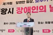 [경남도민뉴스=김동규 기자] 의왕시는 4월 21일 국민체육센터에서 관내 장애인과 가족, 내빈 등 1,000여 명이 참석한 가운데 ‘제19회 의왕시 장애인의 날 기념행사’가 성황리에 개최됐다고 밝혔다. 희망나래장애인복지관 주관한 이날 행사는 장애인의 날을 맞아 ‘당연한 일상, 모두가 누릴 수 있도록’이라는 표어 아래, 장애인과 비장애인이 함께 소통하는 화합의 장을 마련하고 더불어 살아가는 사회 분위기 조성을 위해 추진됐다. 이날 행사는 식전 축하공연으로 △농아인협회 의왕시지회 수어공연 △퓨전 플루티스트 서가비의 공연이 펼쳐졌으며, 이어 (사)경기도 신체장애인복지회 의왕시지회 김재진, 이지나 씨의 장애인 인권헌장 낭독과 기념식, 유공자 표창 등이 진행됐다. 특히, 으뜸 장애인상에서는 ‘모범장애인 부문’에 안광례 씨, ‘장애인봉사 부문’에 황순규 씨가 각각 수상해 큰 박수를 받았다. 또한, 장애인복지 유공자 시상에서는 △박미애(농아인협회) △강경아(희망나래장애인복지관) △권희선(의왕장애아재활치료교육센터) △김희수(해온장애인보호작업장) △김수종(의왕시청 노인장애인과) △우채운(의왕시장애인주간보호시설) △오