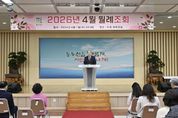 [경남도민뉴스=김동규 기자] 동두천시는 4월 1일 시청 대회의실에서 4월 명예시장으로 위촉된 조황래 동두천중앙성모병원 원장과 전 직원이 참석한 가운데 월례조회를 개최했다. 이날 식전 공연에서는 송내동 주민자치 프로그램 댄스트롯장구팀의 재능 기부로 춤과 노래를 선보여 분위기를 더했다. 박형덕 동두천시장은 제19회 암 예방의 날 유공 공무원 1명(▲훈격 장관)과 자원봉사 활동 유공 시민 1명(▲훈격 도지사)에게 표창을 전수했다. 또한, 통합방위지원태세 업무 유공 시민 2명, 시정발전 유공 시민 20명에게 표창을 수여했으며, 2025년도 주요업무 자체평가 15개 부서에 각각 상장을 수여하고 격려했다. 훈시 사항으로는 첫째, 시민들의 야외 활동이 본격화되는 시기인 만큼 산불 예방과 화재 안전관리에 만전을 기해 달라고 했다. 둘째, 국제유가와 물가 급등으로 서민 경제가 그 어느 때보다 힘든 시기인 만큼 민생 안정을 위해 따뜻한 나눔 행정을 펼쳐줄 것을 강조했다. 끝으로, 시정 발전을 위해 멈추지 않는 혁신을 이어 나가자고 독려했다. 그 일환으로 10년간 방치됐던 소요산 축산물 브랜드육타운을 휴식
