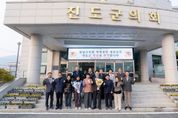 [경남도민뉴스=김완호 기자] 강남구의회는 15일 전라남도 진도군의회와 간담회를 갖고 양 의회 간 협력 관계 강화를 위한 논의를 진행했다. 이번 협약식에는 이호귀 의장·이동호 운영위원장·이향숙 의원·윤석민 의원·이성수 의원·손민기 의원·노애자 의원과 박금례 진도군의회 의장을 비롯한 진도군의회 의원들이 참석해 지속적인 교류와 협력을 강화하기로 뜻을 모았다. 이호귀 의장은 답사를 통해“이번 친선결연 협약식을 통해 양 의회가 발전하고 주민 행복에 실질적인 변화를 이끌기를 희망한다”라며, “앞으로도 내실 있는 실행으로 지역 주민의 삶의 질 향상과 지방자치 발전에 기여할 수 있도록 최선을 다하겠다”라고 말했다. 한편, 진도군은 천혜의 해양자원과 함께 진도아리랑 등 풍부한 전통문화가 살아 숨 쉬는 지역으로 아름다운 자연환경과 역사적 유산을 바탕으로 관광과 문화예술이 조화를 이루고 있다. 강남구의회는 앞으로 진도군의회와 지속적으로 교류하며, 양 지자체 간 협력이 성공적으로 추진될 수 있도록 적극 지원할 예정이다.