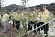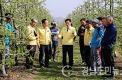(거창/김은경 기자) = 거창군의회는 지난 8일 봄철 갑작스러운 폭설로 인해 사과꽃 냉해 피해를 당한 지역을 방문하고 지역주민들과 아픔을 함께 했다. 이번 냉해 피해 원인으로 일시적인 고온 현상으로 사과꽃 피는 시기가 지난해에 비해 3~5일정도 빨랐고, 4월 초순 뜻하지 않은 폭설과 급격한 저온 현상이라는 분석하고 있으며, 개화기에 접어든 사과원의 경우 피해정도가 생각보다 심각할 것이라는 예상을 하고 있다. 이번 현장방문은 냉해 피해가 심한 주상면, 북상면 일원을 대상으로 실시했으며 그중에서도 주상면 완대리 일원과 북상면 창선리 일원 등을 방문하여 관련 부서의 대책 설명과 함께 현재는 물론 향후 발생할 수 있는 문제점에 대해 고민을 함께 나눴다. 현장을 둘러본 거창군의회 의장은 “기상이변으로 인한 걱정은 늘 하면서도 아직 대책을 수립하지 못해 이번 사과꽃 냉해 피해가 발생한 것 같다”고 우려 하면서 “군에서 피해농가가 누락되지 않도록 정밀조사를 통해 예비비 지원 등 충분한 조치를 강구하겠다"고 밝힌 만큼 "농가의 피해가 최소화 될 수 있도록 의회에서도 집행부와 힘을 모아 적극적으로 대처하겠다”고