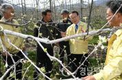 (거창/김은경 기자) = 거창군(양동인 군수)은 지난 10일 거창군 관내 사과꽃 냉해 피해 현장을 찾아 농업인을 위로하고 피해 상황을 점검했다. 거창군에 따르면 “지난 8일 새벽 최저 영하 7.5℃까지 기온이 내려가면서 과수농가가 피해를 입었으며, 개화기에 접어든 사과원의 경우 사과꽃 냉해 피해가 90%이상으로 심각하다”고 밝혔다. 한편, 거창군 사과 재배 면적은 1,770ha로 경남지역 사과 생산면적의 53%를 차지하고 있어 도내 사과 공급에 차질을 빚을 것으로 보인다. 양동인 군수는 “과수농가의 저온 피해 최소화와 지원 대책을 마련하고, 피해 농가가 누락되지 않도록 정밀조사를 실시하겠다”고 말했다. 군 관계자는 “저온으로 사과 중심화(어미 꽃)가 피해를 입은 경우 피해상황을 잘 확인하여 측화(새끼 꽃)에 인공수분을 실시하고, 적과시기를 최대한 늦추어야 한다. 잎이 피해를 입은 경우 열매 맺는 양을 줄이고 낙화 후 요소를 용액 상태로 잎에 뿌려 나무의 기운을 회복하는데 주력해야 한다”고 농가 주에게 당부했다. 농지소재지 읍·면사무소를 통해 피해 상황을 접수받고 있으며, 이달 13