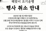 [경남도민뉴스=김종태 기자] 사천시는 제주항공 여객기 사고로 인해 국가 애도기간에 예정된 해넘이·해맞이 등 시에서 주최하는 모든 축제성 행사를 취소하기로 했다고 30일 밝혔다. 박동식 시장은 이날 오전 전남 무안국제공항에서 발생한 제주항공 여객기 사고에 따른 긴급 간부회의를 열고, ‘2024년 제야타종식’ 행사를 전면 취소하기로 결정했다. 그리고, ‘2025 삼천포대교 해맞이’ 행사도 불꽃놀이 등 프로그램은 취소하기로 결정했다. 하지만, 많은 시민들이 일출을 보기 위해 자발적으로 모이기 때문에 기존의 안전관리계획에 따라 시민들의 안전과 교통편의를 위한 안전관리에는 집중하기로 했다. 이번 결정은 지난 29일 오전 전남 무안국제공항에서 발생한 제주항공 여객기 사고로 인해 정부가 국가 애도기간을 선포하면서 내려진 조치이다. 특히, 희생자와 유족들에 대한 조의와 애도를 표하기 위해 결정된 것. 국가 애도기간은 12월 29일부터 2025년 1월 4일까지 7일간이다. 사천시는 31일 저녁 9시 시청 노을광장에 소재한 사천시민대종 종각에서 ‘2024 제야타종식’ 행사와 1월