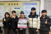 [경남도민뉴스=김채연 기자] 부산 북구 구포3동 행정복지센터는 지난 24일, 성도고등학교 일본문화동아리 학생들이 학교 행사에서 마련한 수익금 전액을 지역 내 어려운 이웃을 위해 기탁했다고 밝혔다. 이날 기탁에는 성도고등학교 일본문화동아리 소속 최한민, 문건우, 이찬헌, 정유현 학생이 참여했으며, 학생들은 학교 행사 기간 동안 직접 타코야끼를 만들어 판매해 얻은 수익금 181,600원을 전액 전달했다. 이번 성금은 학생들이 자발적으로 뜻을 모아 준비한 것으로, 수익금 전액을 기부하기로 결정해 나눔의 의미를 더했다. 학생들은 “학교 행사에서 즐겁게 활동하며 얻은 수익금을 지역사회에 환원할 수 있어 기쁘다”며 “작은 정성이지만 도움이 필요한 이웃들에게 따뜻한 힘이 됐으면 좋겠다”고 소감을 전했다. 또한 “앞으로도 기회가 된다면 나눔 활동에 꾸준히 참여하고 싶다”고 덧붙였다. 장춘화 구포3동장은 “학생들이 직접 땀 흘려 번 수익금을 이웃을 위해 기탁해 준 점이 더욱 뜻깊다”며 “청소년들의 따뜻한 마음이 지역사회에 큰 울림을 주고 있다”고 감사의 뜻을 전했다. 이어 “기탁된 성금은
